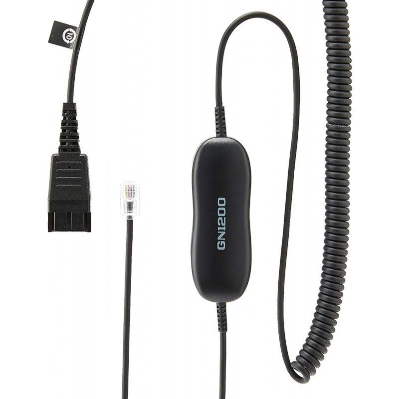 The Jabra GN1200 CC smart cable connects Jabra headsets to most business phones with standard RJ9 headset ports.