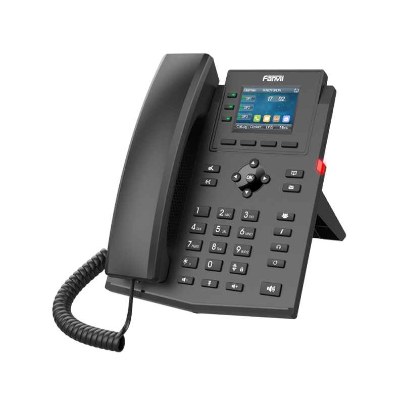 The Fanvil X303G is an enterprise-grade IP desk phone designed to deliver professional telephony features at strong value. With support for 4 SIP lines, it accommodates users who manage multiple extensions or require multi-line functionality in call-centres, offices or shared environments. The vibrant 2.4-inch colour screen (320 × 240 pixels) provides clear call information, menu navigation and contact details, enhancing user experience and reducing training time.