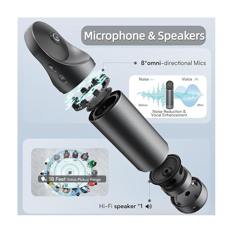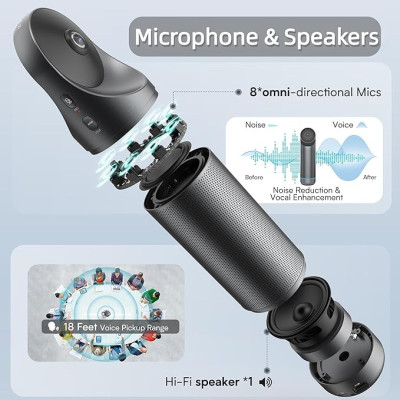 8 Microphones & 10W Speakers for Any Meeting Space - Featuring built-in 8 omnidirectional mics and a customized Hi-Fi speaker, this conference camera accurately captures the speaker's voice while preventing background noise from disturbing meetings.