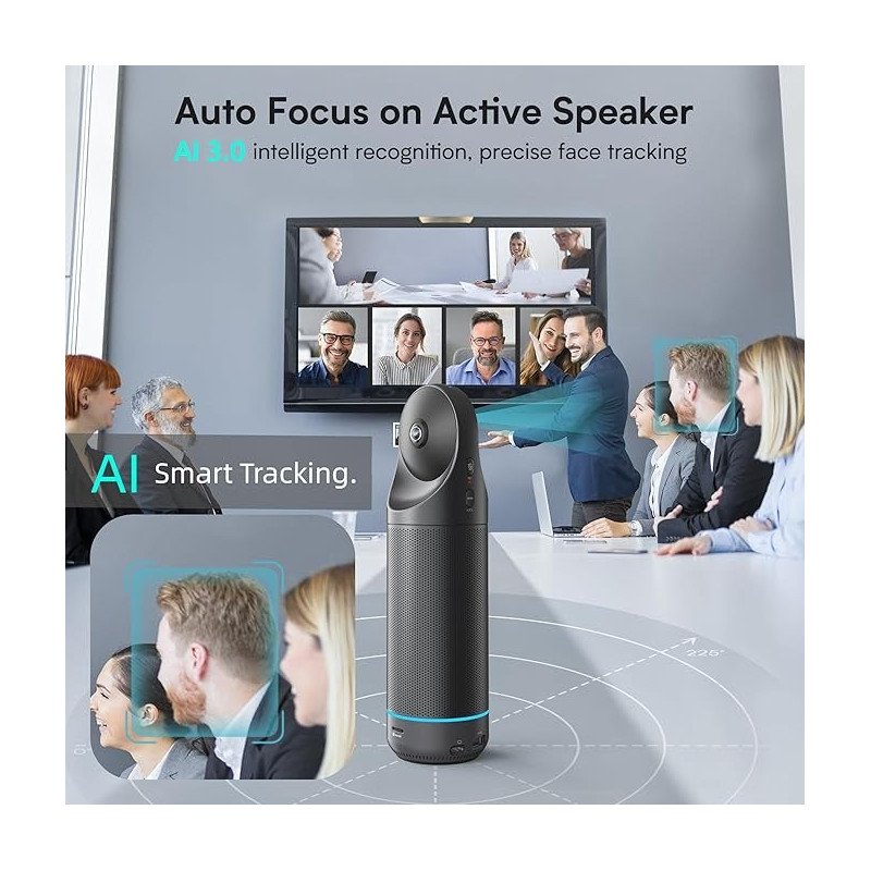 AI Tracking Auto-focus for Real-time Conversion - With the latest KanDao AI 3.0 Intelligent Recognition technology, this 360-degree meeting camera excels in pinpointing the speaker's position with remarkable 15-degree accuracy, ensuring seamless tracking throughout the session.