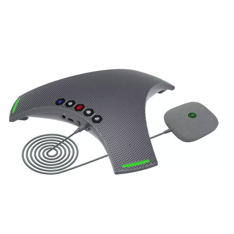 Hybrid conference phone with intuitive interface. OmniSound audio technology brings a natural sense of presence to the dialog. Suits everything from small to extra large meeting rooms, thanks to optional Konftel Smart Microphones and daisy-chain capabilities. Konftel 800 brings true delight to all kinds of distance meetings.