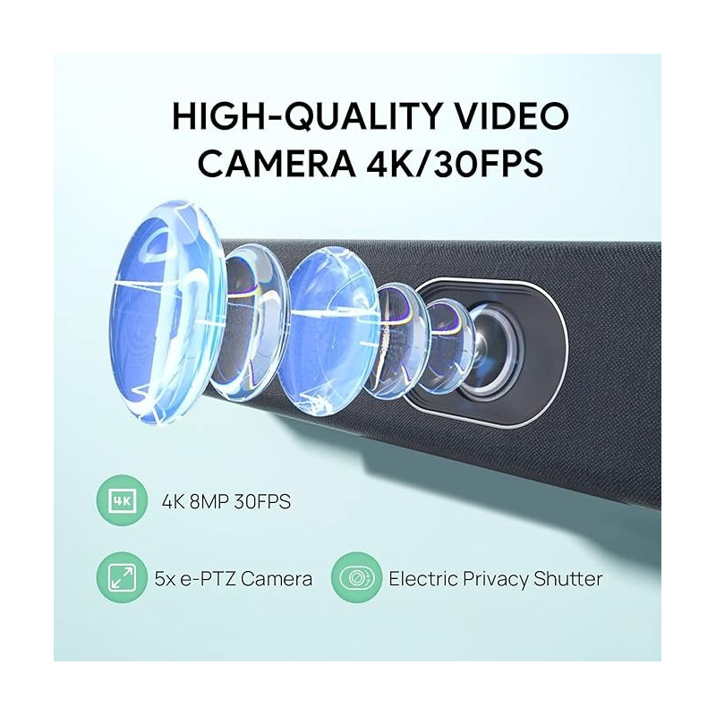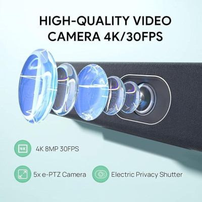 Conference Room Camera Teams Zoom Certified,120° Wide Angle Webcam with 8 Microphones and Speakers, Audio and Video Conferencing System for Small and Huddle Rooms