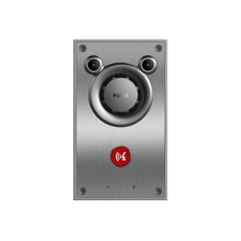 Fanvil A12 audio intercom is a brand-new device featuring a built-in 10W speaker and a unique turbo sound chamber design, delivering impressive audio performance. It utilizes Fanvil's advanced dual-microphone noise reduction technology and voice enhancement algorithms, ensuring clear audio capture even in noisy environments. Additionally, it combines a stainless steel panel with an integrated aluminum alloy structure, making it not only aesthetically pleasing but also corrosion-resistant, and suitable for various harsh environments.