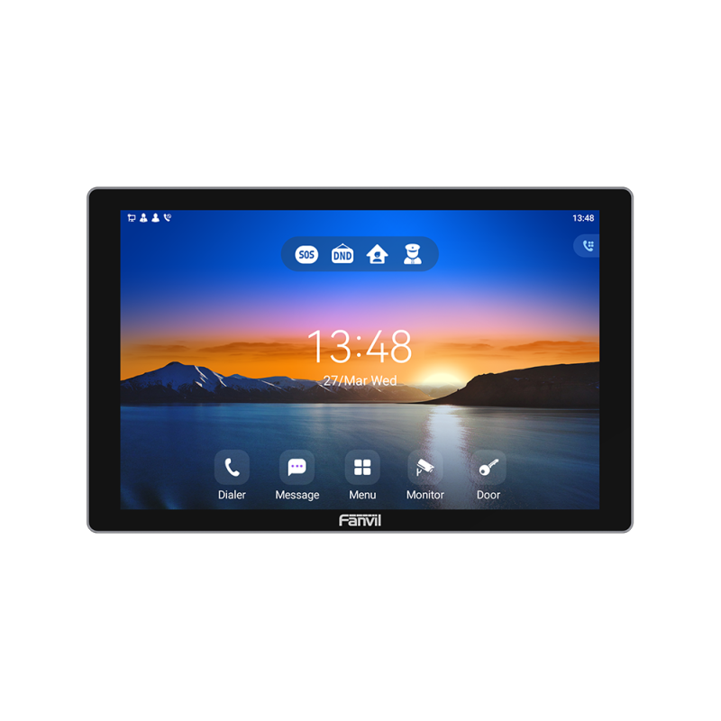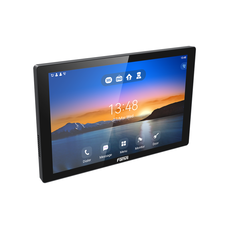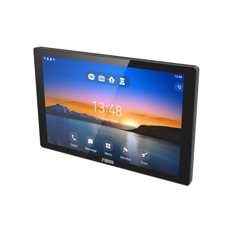 The Fanvil i507W indoor station is a premium wall‑ or desk‑mounted unit designed for modern access‑control, intercom and smart‑building installations. The large 10.1‑inch capacitive touchscreen (1280 × 800 resolution) provides an intuitive and responsive interface for visitor calls, door‑unlock commands, and monitoring connected devices.