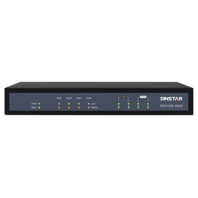 The DAG1000-4S4O Hybrid Analog VoIP Gateway offering seamless connectivity between IP-based telephony networks and legacy telephones (POTS), fax machines and PBX systems. The analog gateway has 4 FXS and 4 FXO ports which integrates both FXS and FXO features. Besides, the gateway is also designed with power failover and IP/SIP fail over features. With the standard SIP protocol, it's compatible with leading IMS/NGN platforms and SIP-based IP Phone systems. It provides low-cost and easy-to-use VoIP solutions for small and medium businesses, call centers, SOHO, remote offices as well as enterprises with multiple branches.