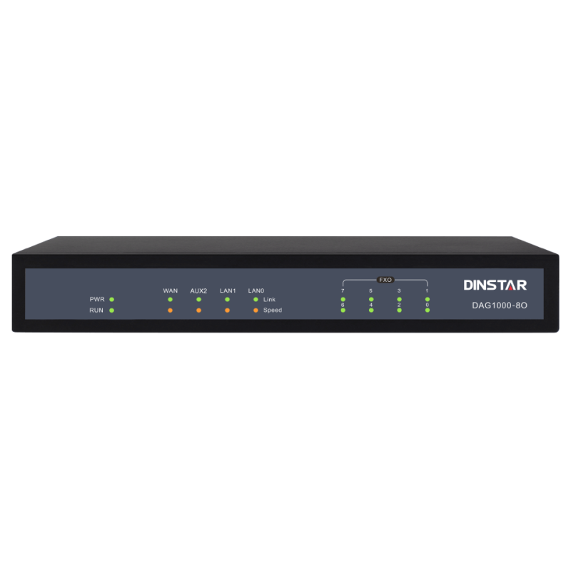 DAG1000-8O FXO Analog VoIP Gateway is a type of access gateway offering seamless connectivity between IP-based telephony networks and legacy telephones (POTS) and PBX systems. The analog gateway has 8 FXO ports and is used to connect to analog PBX or the PSTN lines of telecom carriers. With the standard SIP protocol, it's compatible with leading IMS/NGN platforms and SIP-based IP Phone systems. It provides low-cost and easy-to-use VoIP solutions for small and medium businesses, call centers, SOHO, remote offices as well as enterprises with multiple branches.