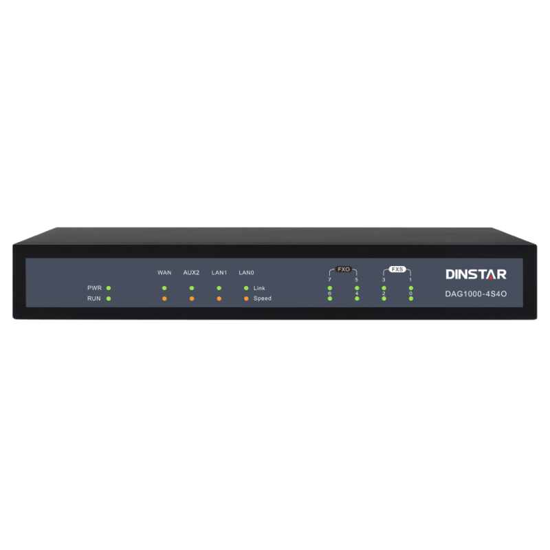 The DAG1000-4S4O Hybrid Analog VoIP Gateway offering seamless connectivity between IP-based telephony networks and legacy telephones (POTS), fax machines and PBX systems. The analog gateway has 4 FXS and 4 FXO ports which integrates both FXS and FXO features. Besides, the gateway is also designed with power failover and IP/SIP fail over features. With the standard SIP protocol, it's compatible with leading IMS/NGN platforms and SIP-based IP Phone systems. It provides low-cost and easy-to-use VoIP solutions for small and medium businesses, call centers, SOHO, remote offices as well as enterprises with multiple branches.